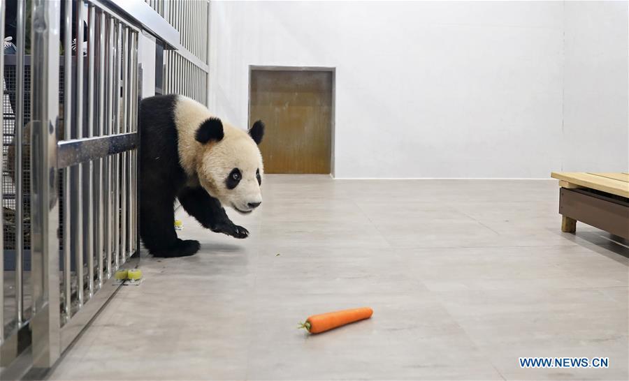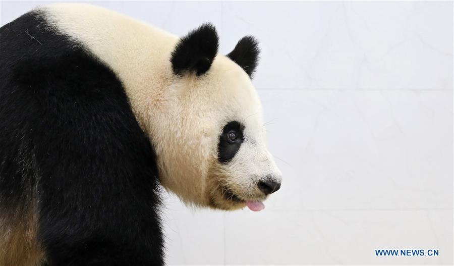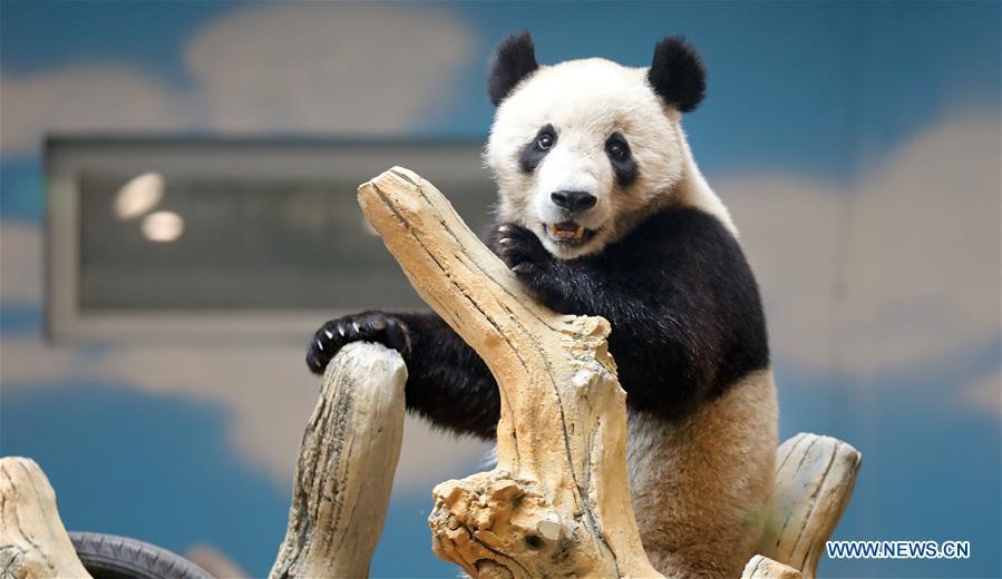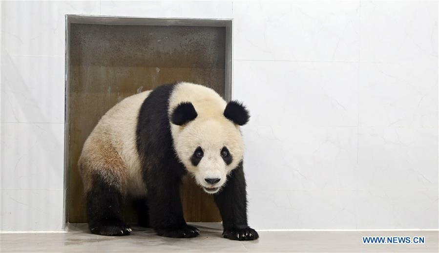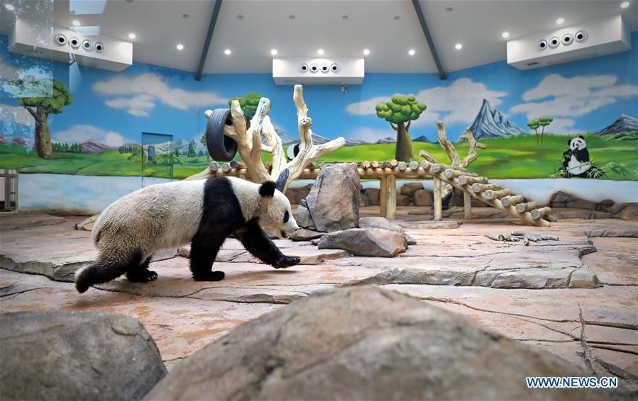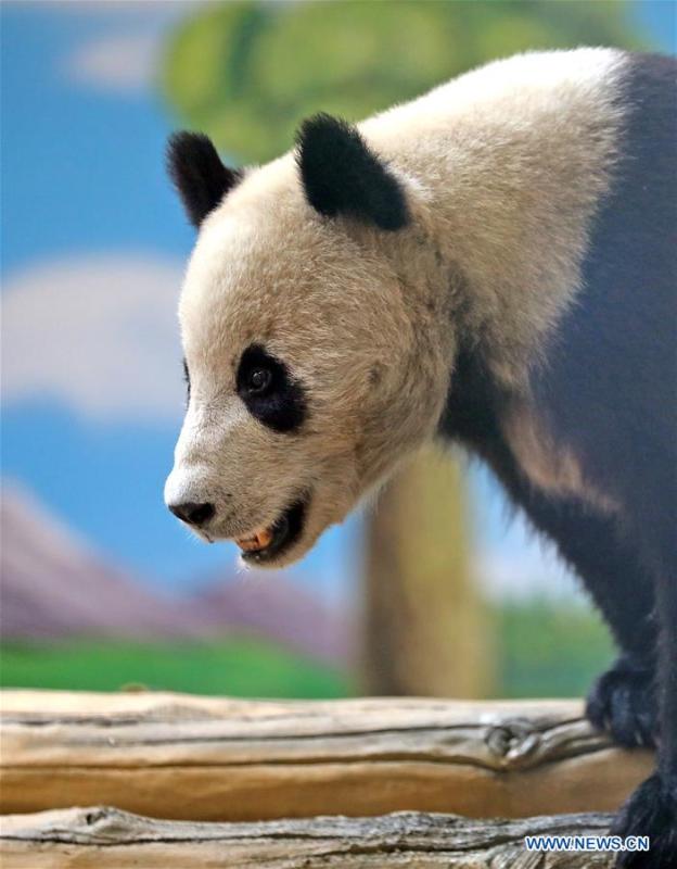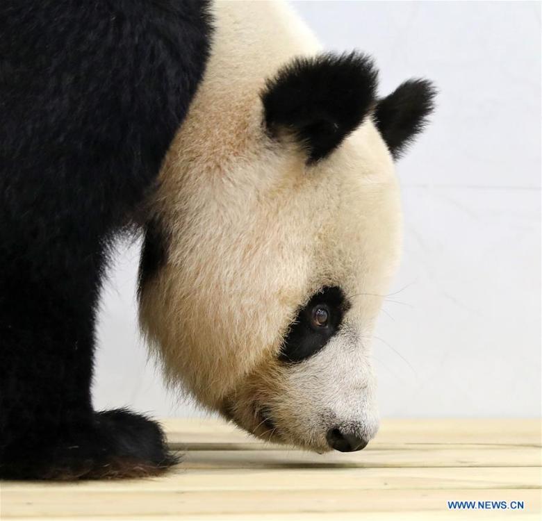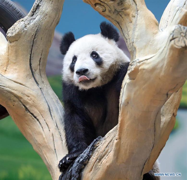 Giant panda "A'ling" is seen at the giant panda breeding house of a zoo in Anshan, northeast China's Liaoning Province, May 21, 2020. Giant pandas "A'ling" and "Qingcheng", respectively from the China Conservation and Research Center for the Giant Panda Bifengxia Base in Ya'an and Qingchengshan Base in Dujiangyan of southwest China's Sichuan Province, were relocated to a zoo in Anshan on Thursday. They will make their public appearance after an adaptive phase. (Xinhua/Yao Jianfeng)