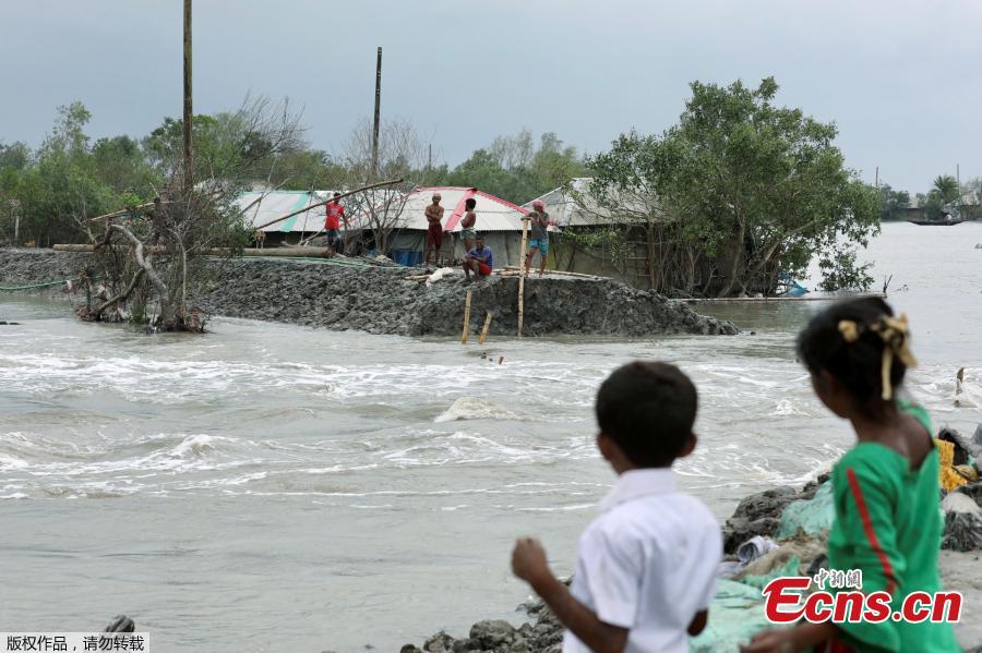 Coastal area is seen flooded after the embankment is destroyed as the cyclone Amphan makes its landfall in Satkhira, Bangladesh, May 21, 2020. (Photo/Agencies)