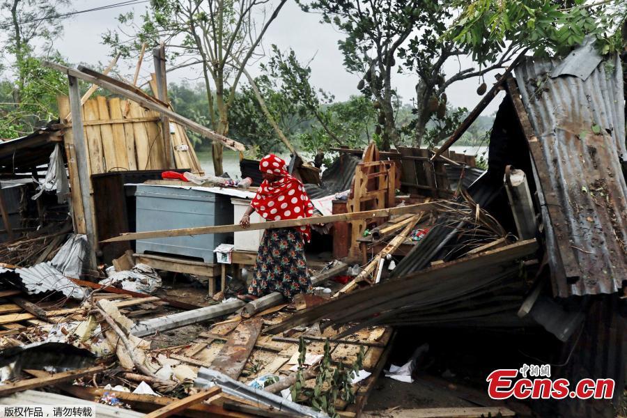 A woman clears her house that was demolished by the cyclone Amphan in Satkhira, Bangladesh May 21, 2020. (Photo/Agencies)