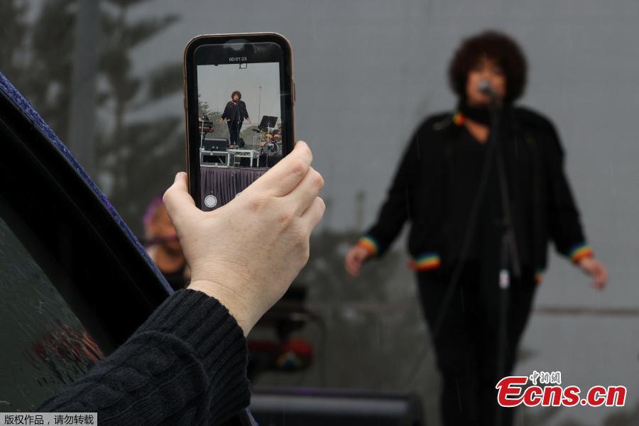 Singer Casey Donovan performs at a drive-in concert organised to allow people to experience live music while observing the coronavirus disease (COVID-19) restrictions in Sydney, Australia, May 21, 2020. (Photo/Agencies)