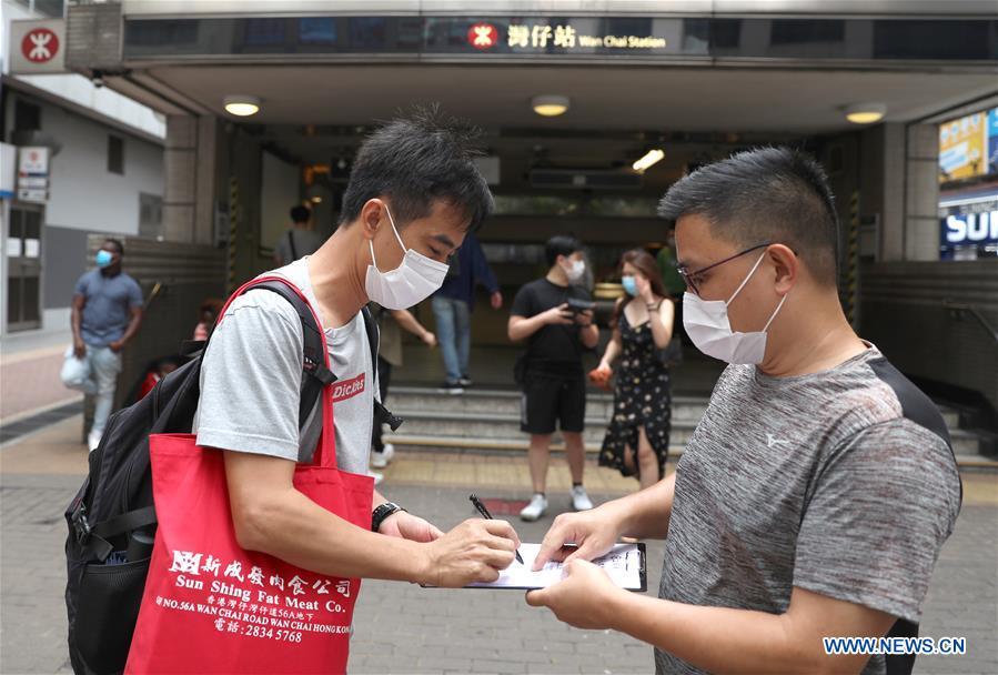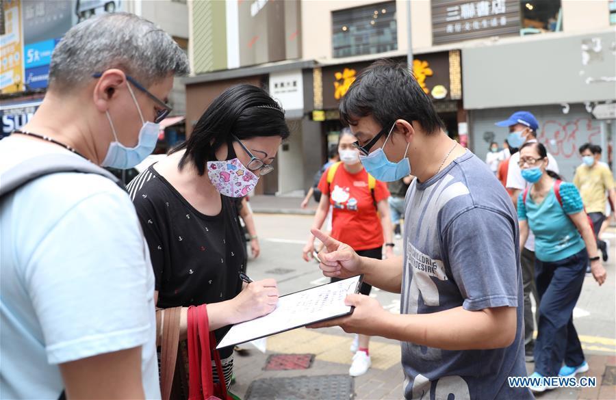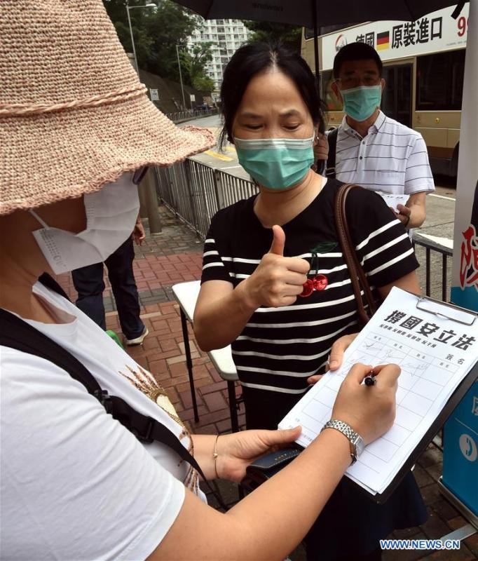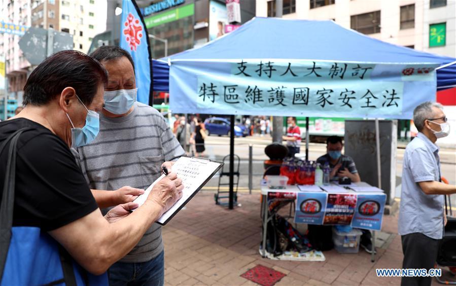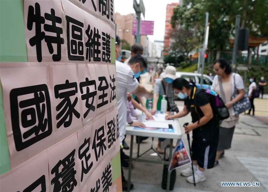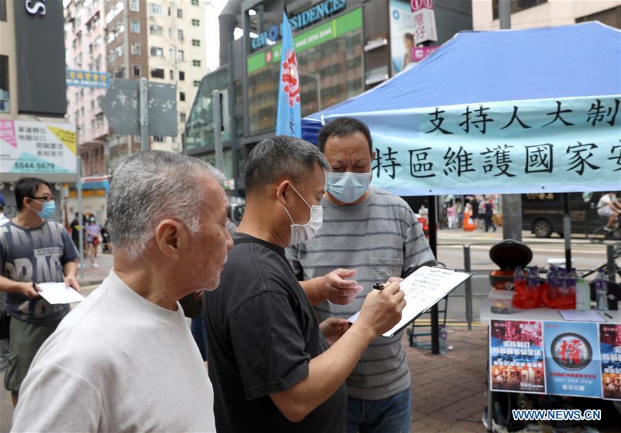 Residents sign in a street campaign in support of national security legislation for Hong Kong Special Administrative Region (HKSAR) in Hong Kong, south China, May 23, 2020. (Xinhua/Li Gang)