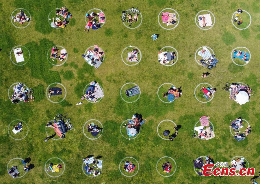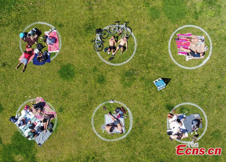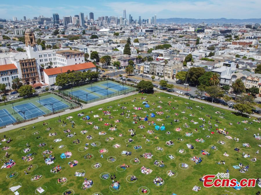 New social distancing circles are shown at Dolores Park on May 24, 2020 in San Francisco, U.S.. The move follows similar efforts by other parks in cities around the world in an effort to get back to some semblance of normalcy.(Photo: China News Service/Liu Guanguan)
