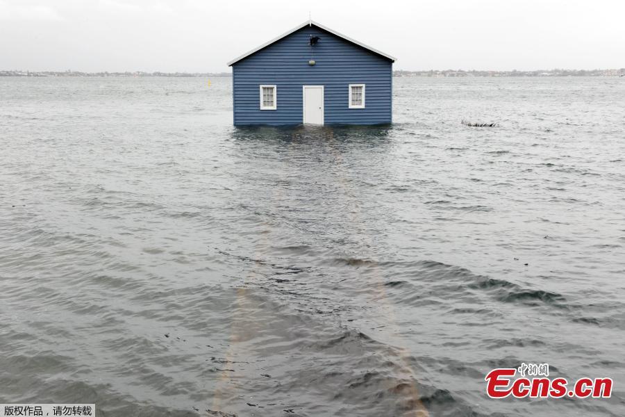 A boathouse on the Swan River sits in water in the Perth suburb of Crawley on May 25, 2020, after the area was lashed by gale force winds and a tidal surge from the remnants of Tropical Cyclone Mangga. (Photo/Agencies)