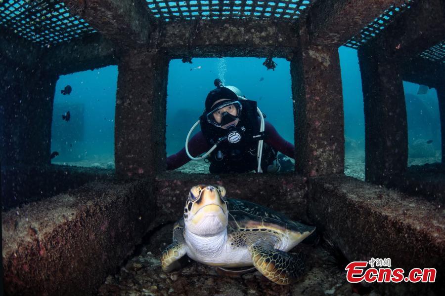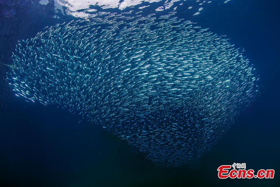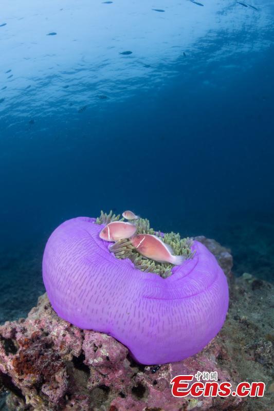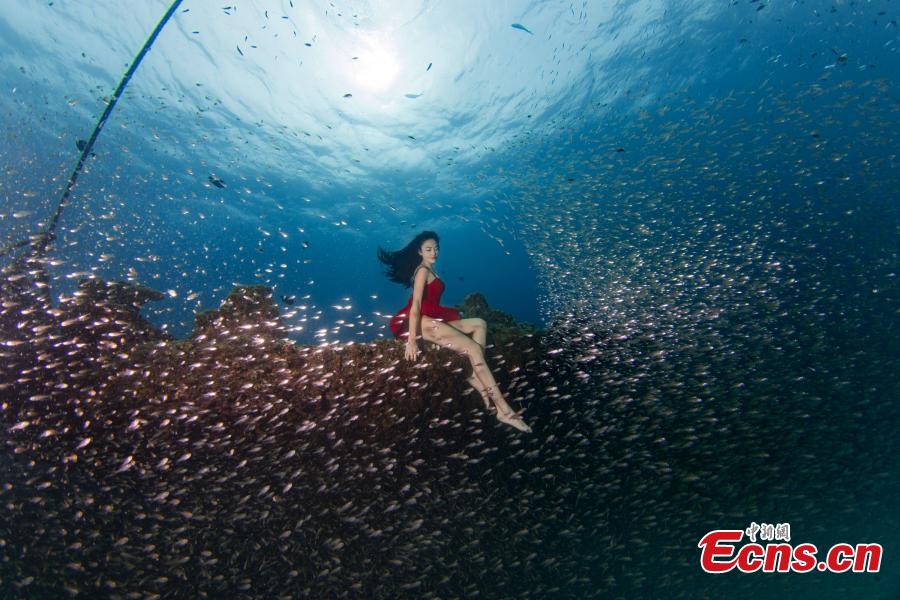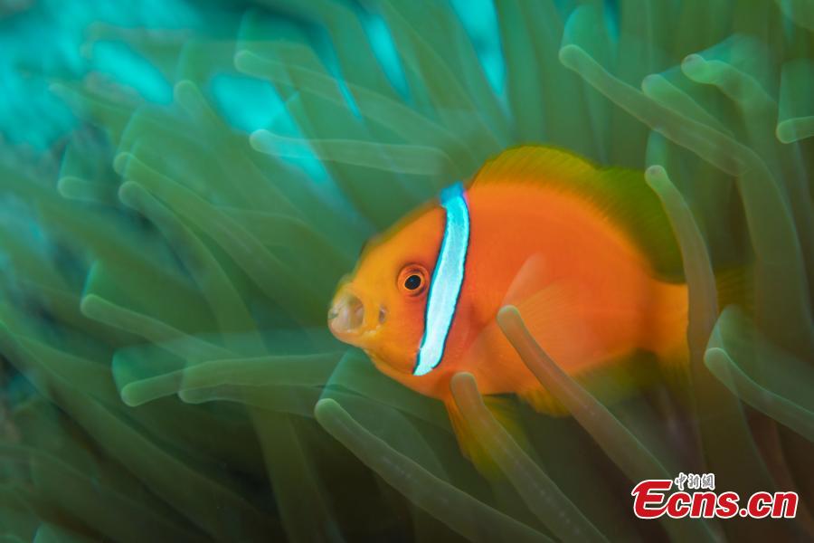 The photo is an award-winning entry of an underwater photography competition. With the theme of depicting undersea world in tropical city Sanya, South China's Hainan province, the event is joined by over 30 photographers. (Photo provided to China News Service)