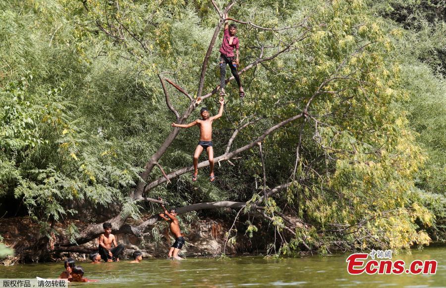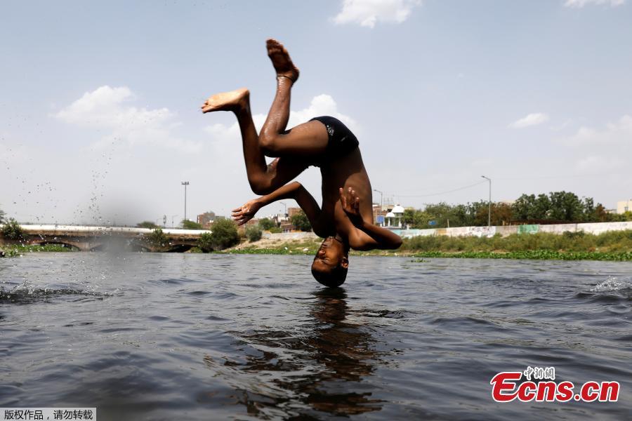 Boys jump into a pond to cool off on a hot summer day in New Delhi, India, May 26, 2020.(Photo/ Agencies)
