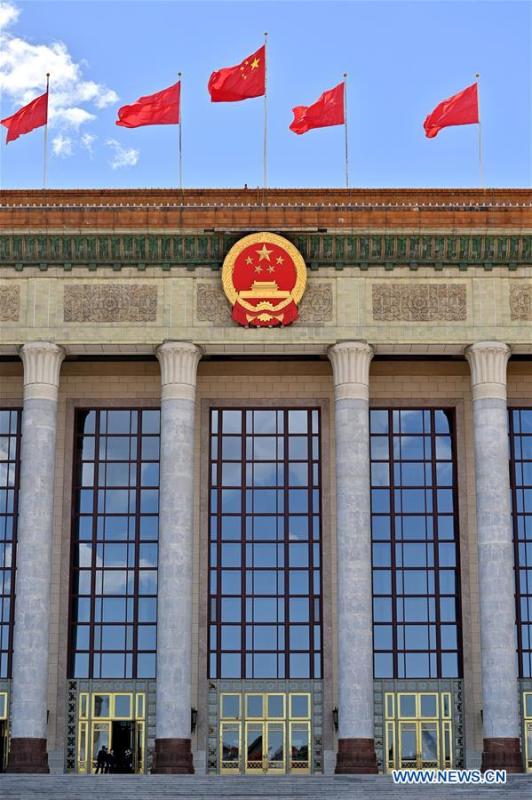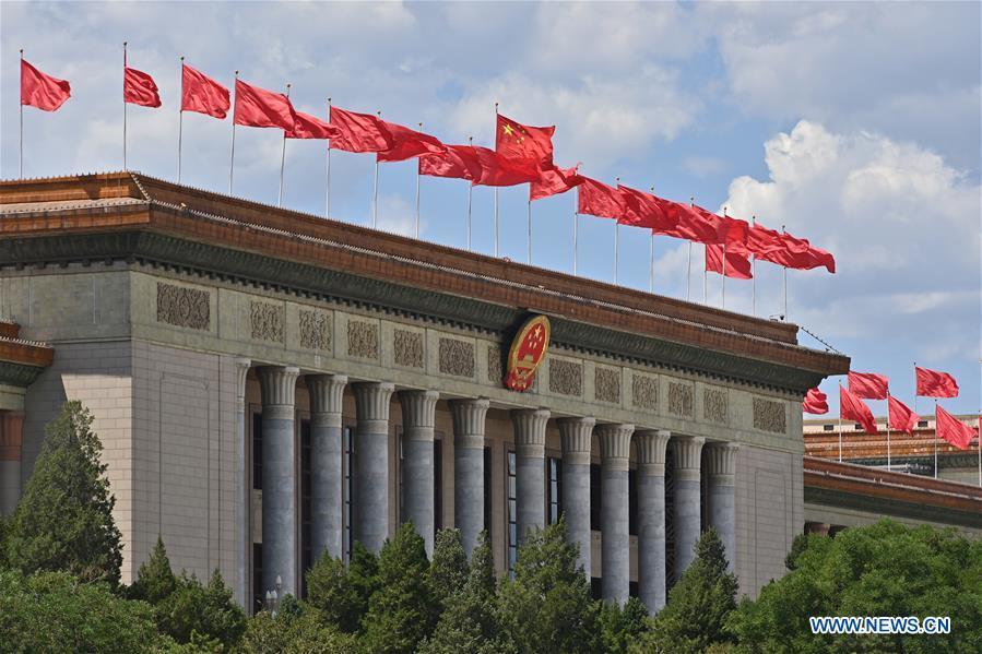 Photo taken on May 27, 2020 shows a view of the Great Hall of the People in Beijing, capital of China. The third session of the 13th National Committee of the Chinese People's Political Consultative Conference (CPPCC) will hold its closing meeting at the Great Hall of the People in Beijing on Wednesday afternoon. (Xinhua/Li Xin)