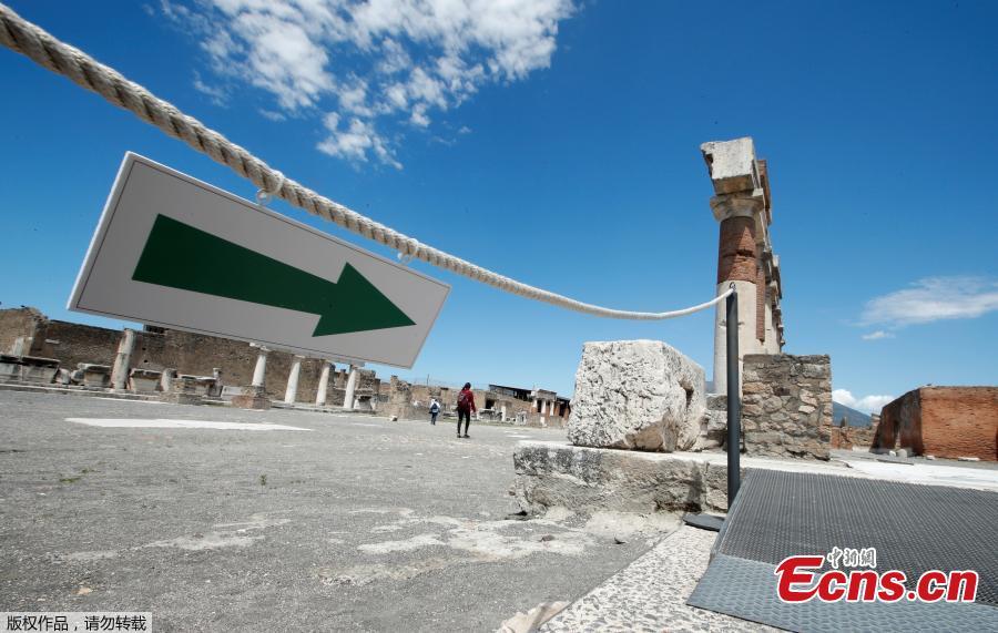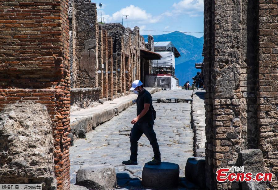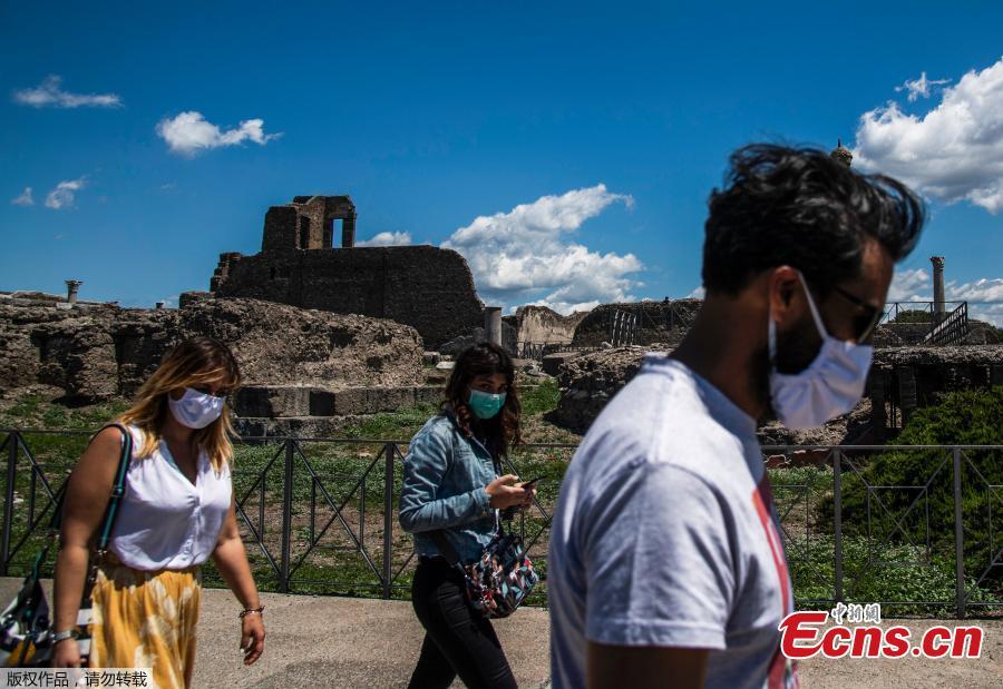 Italian tourists visit the archaeological site of the ancient Roman city of Pompeii as it reopens to the public with social distancing and hygiene rules, after months of closure due to an outbreak of the coronavirus disease (COVID-19), in Pompeii, Italy, May 26, 2020. (Photo/Agencies)