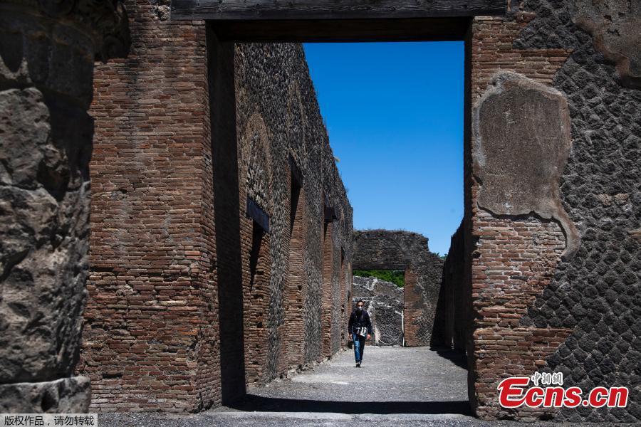 A visitor walks across the archeological site of Pompeii on May 26, 2020, as the country eases its lockdown aimed at curbing the spread of the COVID-19 infection, caused by the novel coronavirus. (Photo/Agencies)
