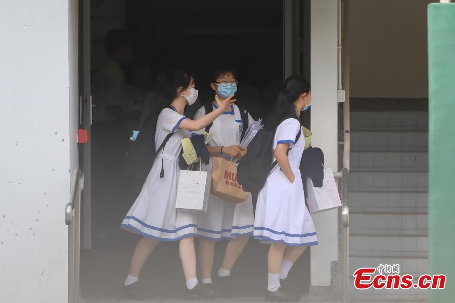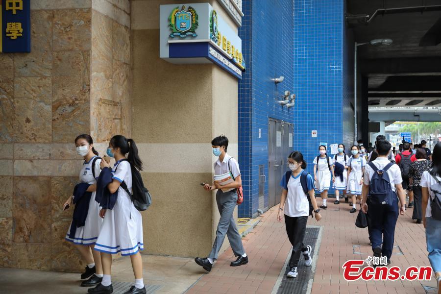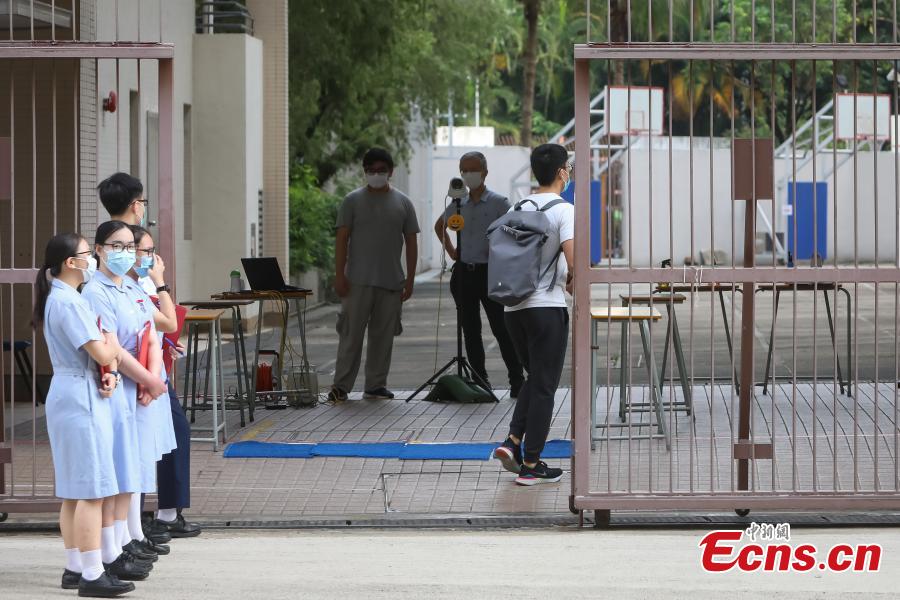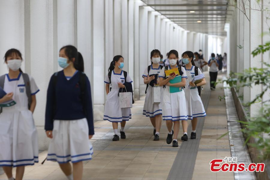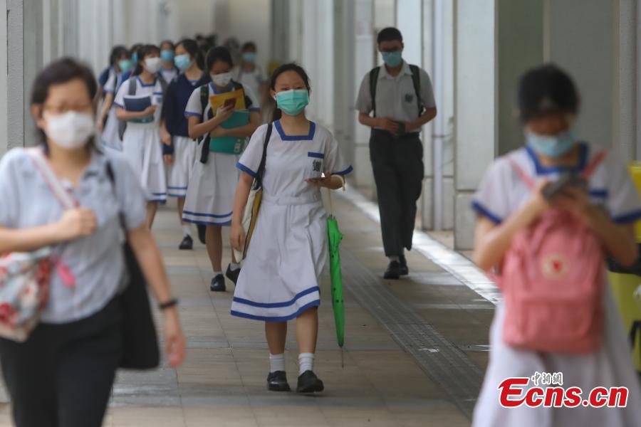 Students enter a middle school in Hong Kong, May 27, 2020. Schools in Hong Kong gradually reopen since Wednesday as previously announced. (Photo: China News Service/Xie Lei)