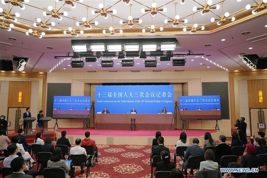 Journalists attend a press conference given by Chinese Premier Li Keqiang in Beijing, capital of China, May 28, 2020. Li took questions from Chinese and foreign reporters via video link during the press conference after the closing of the third session of the 13th National People's Congress in Beijing. (Xinhua/Jin Liangkuai)