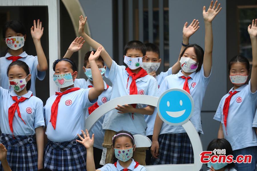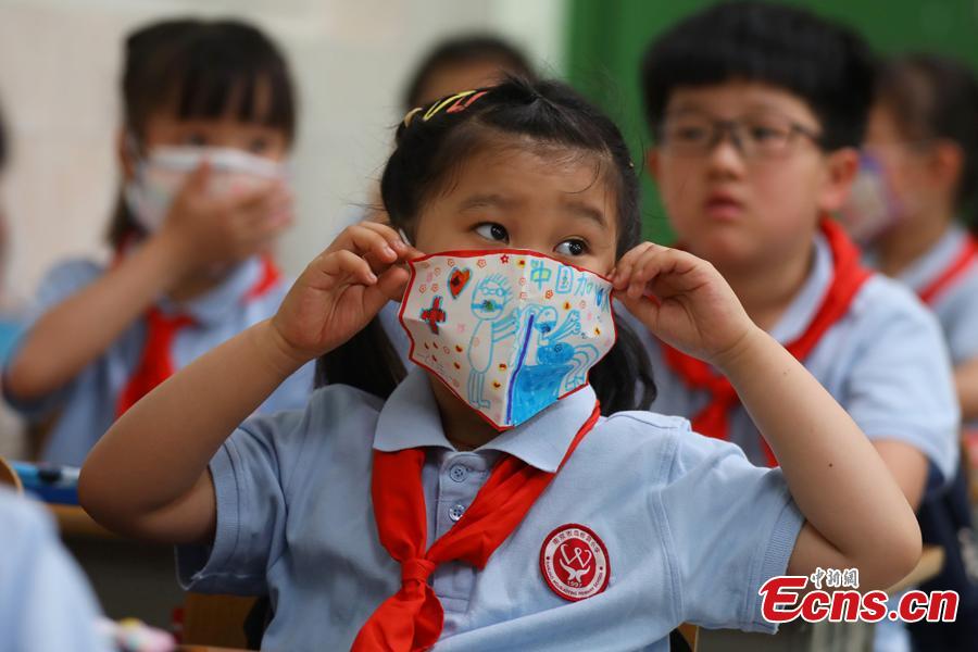 Children at Houbiaoying Primary School in Nanjing, capital of east China's Jiangsu Province, wear DIY "face masks" painted with the theme of fighting COVID-19, June 1, 2020. The school held a variety of themed activities to celebrate the International Children's Day on Monday. (Photo: China News Service/Yang Bo)