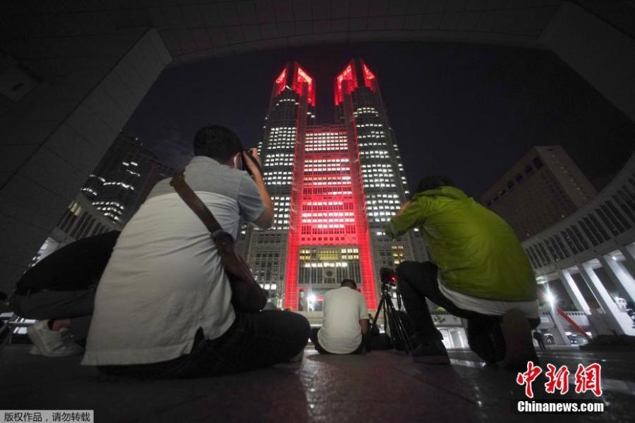 Tokyo Metropolitan Building Office turns a red color from a rainbow color in Shinjyuku Ward, Tokyo, June 2,2020, since Tokyo has issued "Tokyo Alert" for the first time as it saw coronavirus cases with 34 new infections confirmed. The alert aims at drawing people attention to new spike cases to urge greater caution.