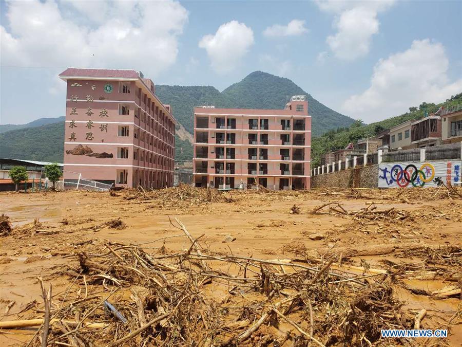 Photo taken on June 7, 2020 shows a school hit by mudslide in Tianlin County of Baise City, south China's Guangxi Zhuang Autonomous Region. Over 320,000 people have been affected by downpours in south China's Guangxi Zhuang Autonomous Region since June 4, local authorities said Sunday. (Xinhua)