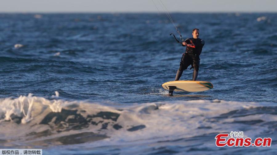 A windsurfer races along the shoreline at New Brighton Beach in Christchurch, New Zealand, Tuesday, June 9, 2020. New Zealanders enjoyed their first day at alert level 1 after Prime Minister Jacinda Ardern announced Monday, June 8 that the Cabinet had agreed to remove almost all remaining coronavirus restrictions from midnight, with the exception of the border strictures. (Photo/Agencies)