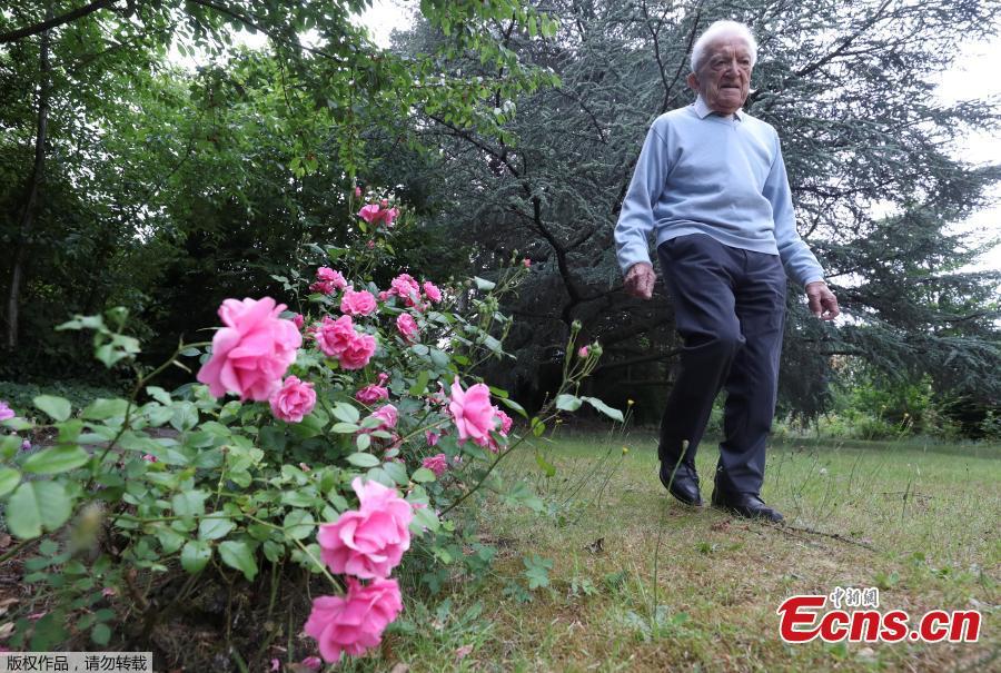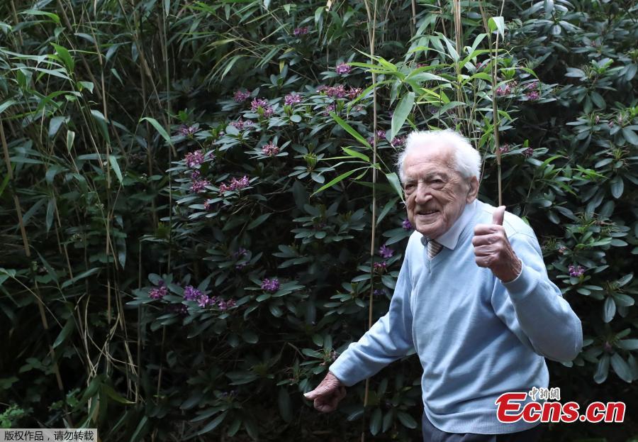 103-year-old Belgian oldest former general practitioner Alfons Leempoels walks in his garden intending to cover a distance equivalent of a marathon to raise money for scientists researching the coronavirus disease (COVID-19) in Rotselaar, Belgium June 9, 2020. (Photo/Agencies)