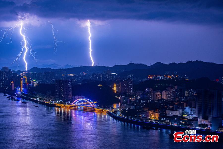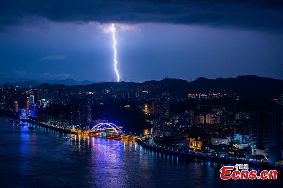 A storm created a spectacular light show over Wuzhou city in South China's Guangxi Zhuang Autonomous Region, June 10, 2020. (Photo: China News Service/ He Huawen)