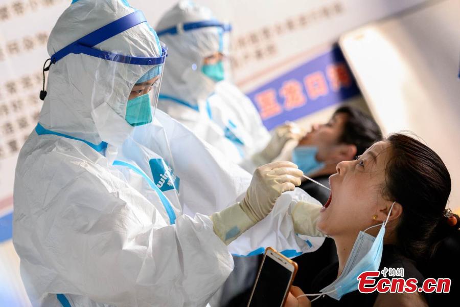 Medical workers conduct COVID-19 throat swab testing for staff of the Wulongkou seafood wholesale market in Taiyuan City, China’s Shanxi Province, June 15, 2020. After the novel coronavirus was reported in Beijing’s Xinfadi wholesale market, many wholesale markets across China have conducted virus detection and nucleic acid tests for staff members. At the Wulongkou market, about 4,000 workers have received nucleic acid tests by Monday. (Photo: China News Service/Wei Liang)