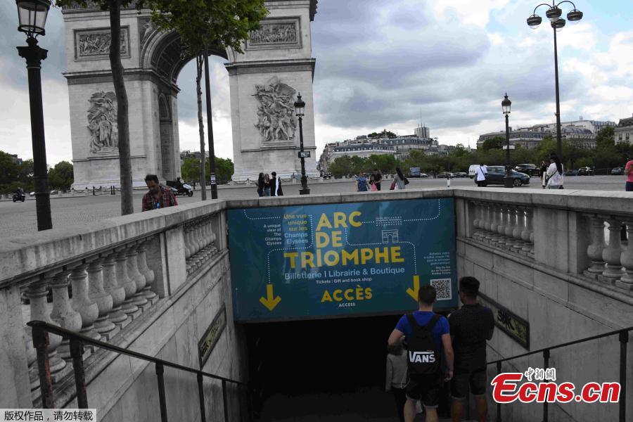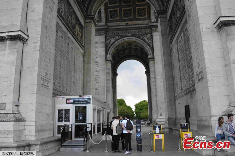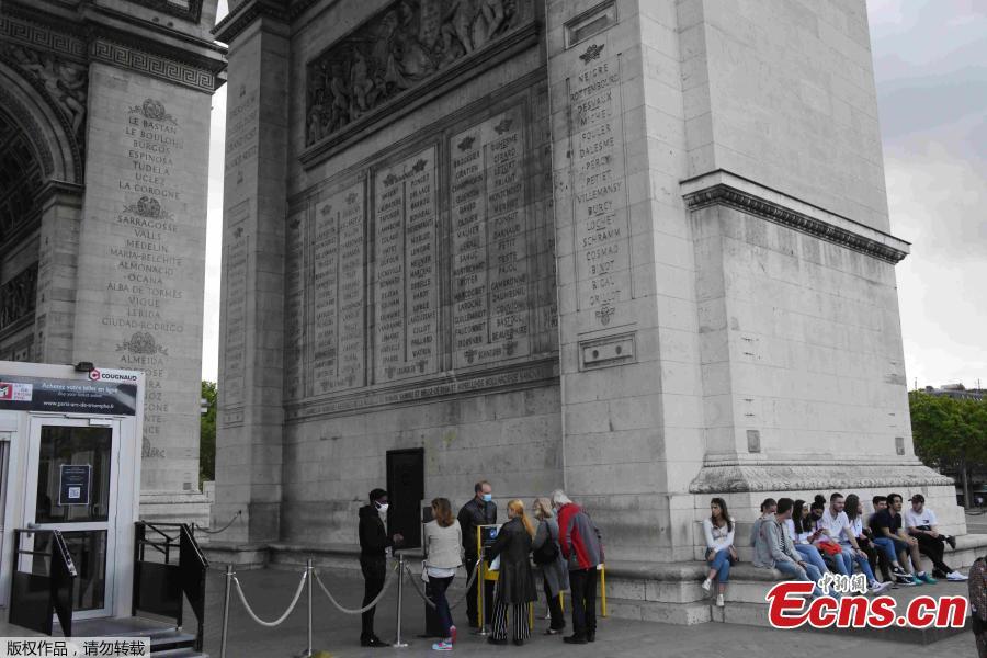 The Arc de Triomphe sitting on the Place de l’Etoile, in Paris, France, reopens to the public on June 15, 2020. The iconic monument of the Champs-Elysées has closed for three months over the COVID-19 pandemic and reopened on Tuesday for a daily maximum of 1000 visitors. Visitors are required to wear face masks. French President Emmanuel Macron on Sunday hailed "a first victory" over the coronavirus epidemic, announcing a return to normalcy from Monday across French regions, except for overseas territories. France's borders with other European Union member states have also reopened on Monday. (Photo/Agencies)