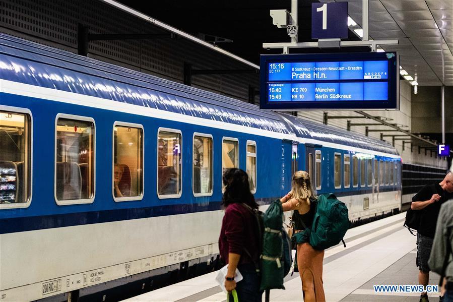 Passengers wait to get on a train to Prague of the Czech Republic at Berlin Central Train Station in Berlin, capital of Germany, June 15, 2020. The German government on Monday lifted its travel warnings for the European Union (EU) members, the Schengen-associated states and Britain, except Spain, Finland, Norway and Sweden. The warnings were replaced by individual travel advice. (Xinhua/Binh Truong)
