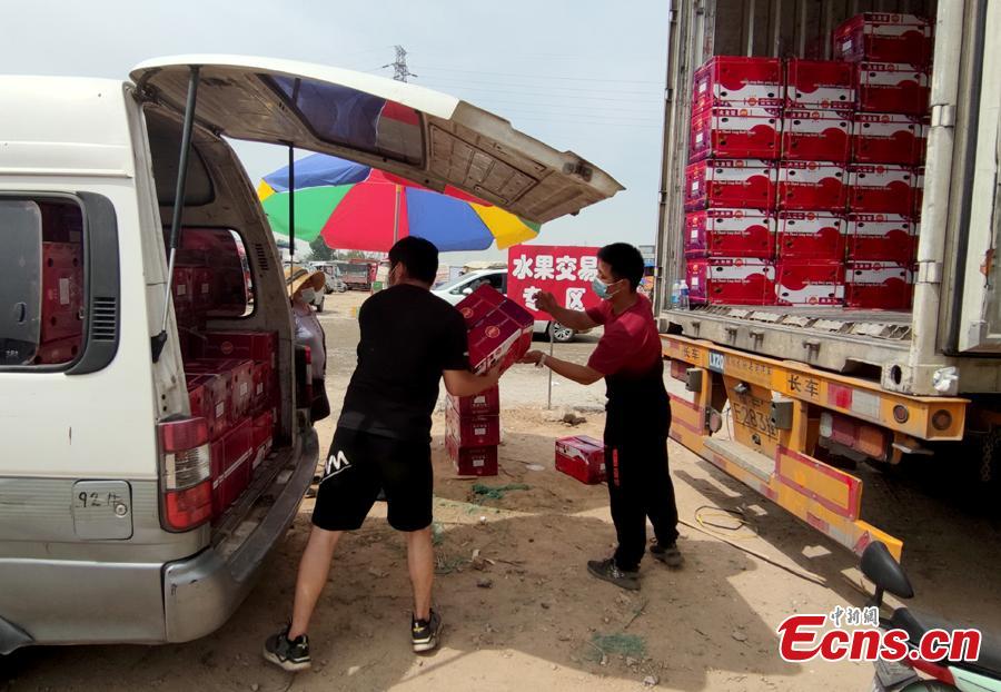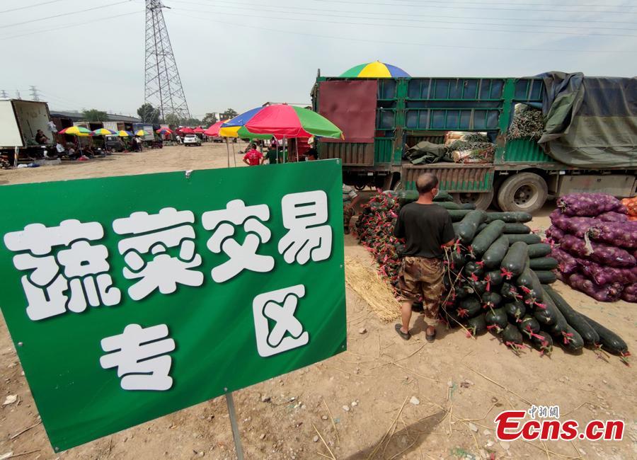 A designated makeshift zone for trading vegetables and fruit is set up on the north side of Jingliang Road, Beijing, June 16, 2020, after the Xinfadi Wholesale Market was closed due to the report of COVID-19 cases. (Photo: China News Service/Zhang Yu)