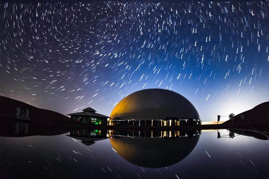 The Desert Star Hotel looks brilliant with starry sky in Zhongwei, Northwest China's Ningxia Hui Autonomous Region. (Photo/chinadaily.com.cn)