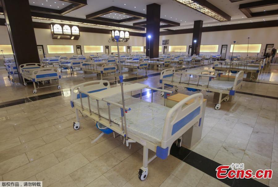 Photo taken on June 22, 2020 shows a hall for Baghdad International Fair turning into a temporary hospital in Baghdad, Iraq. Iraqi Health Minister Hassan al-Tamimi said on Monday that the country is nearing the peak stage of COVID-19 infections. Iraqi Health Ministry reported 1,808 new coronavirus cases, bringing the total number of infections to 32,676. (Photo/Agencies)