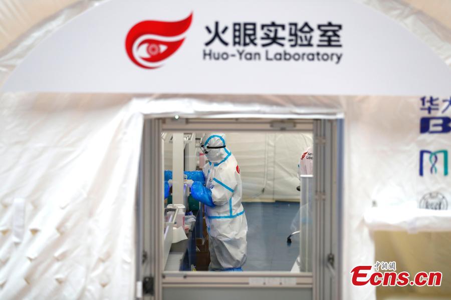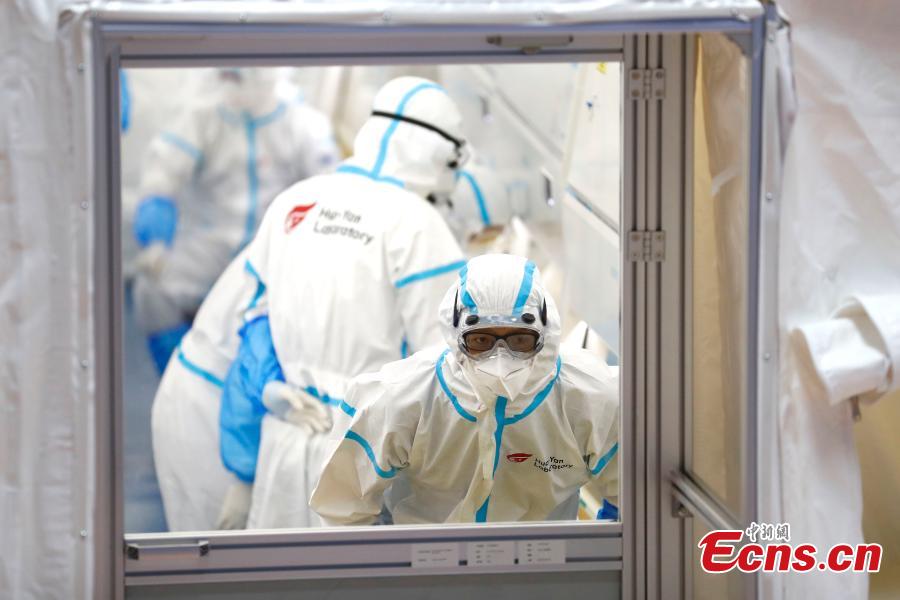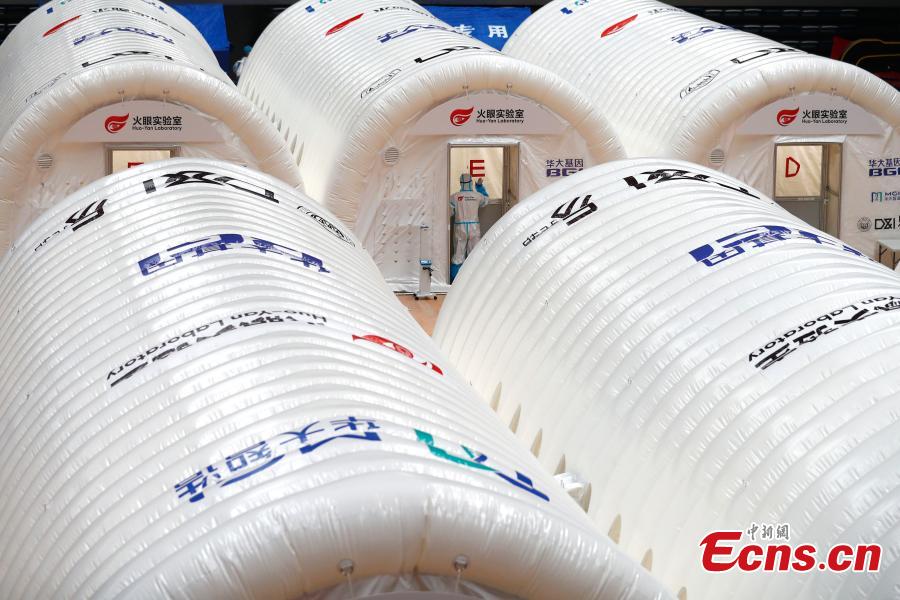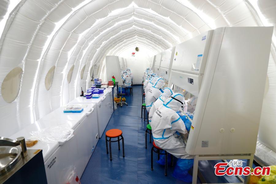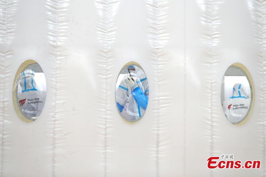 Members of staff work at a COVID-19 testing lab built with an air-inflated structure in Daxing District, Beijing, capital of China, June 23, 2020.(Photo: China News Service/Fu Tian)