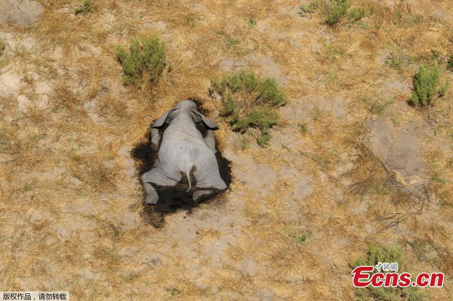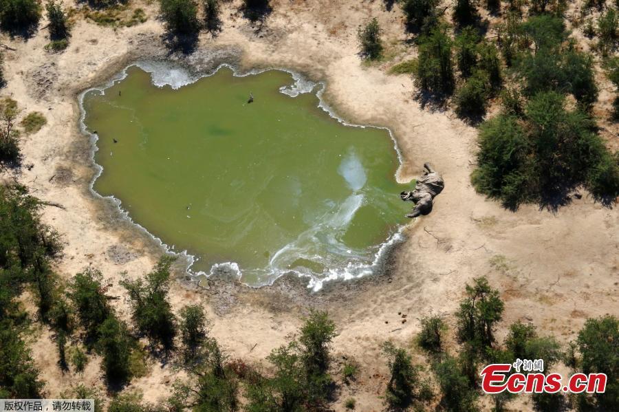 Aerial photo shows an elephant found dead at a watering hole in the Okavango Delta, Botswana. A total of 275 elephants have died since March in Botswana, which is home to a variety of wildlife including elephants, in what is being described as a conservation disaster. (Photo/Agencies)