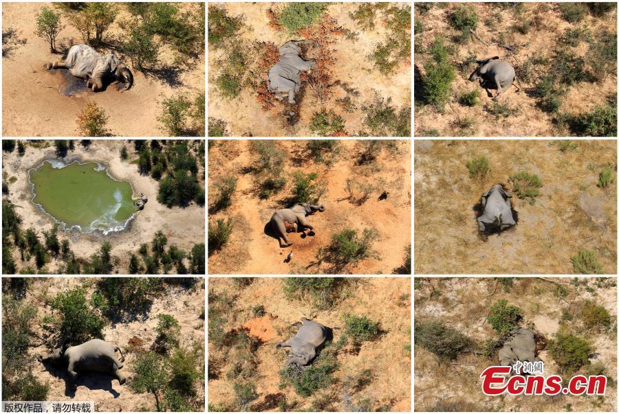Aerial photos show carcasses scattered across the Okavango Delta and other northern parts of the country after a cluster of 'mass die-offs'. A total of 275 elephants have died since March in Botswana, which is home to a variety of wildlife including elephants, in what is being described as a conservation disaster. (Photo/Agencies)