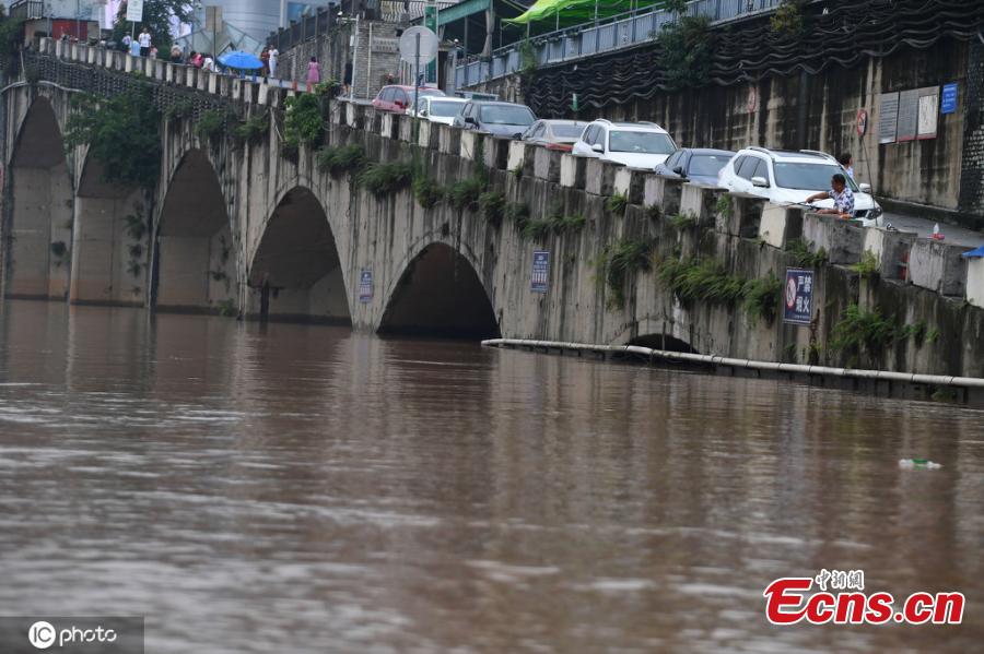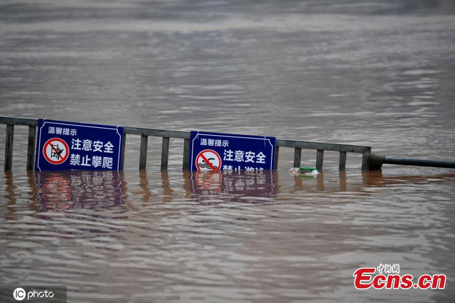 The water level of Chongqing section of the Yangtze river exceeds warning level due to heavy rainfall in Chongqing, July 2, 2020. Heavy downpours battered parts of the city from Wednesday morning to Thursday morning. (Photo/IC)
