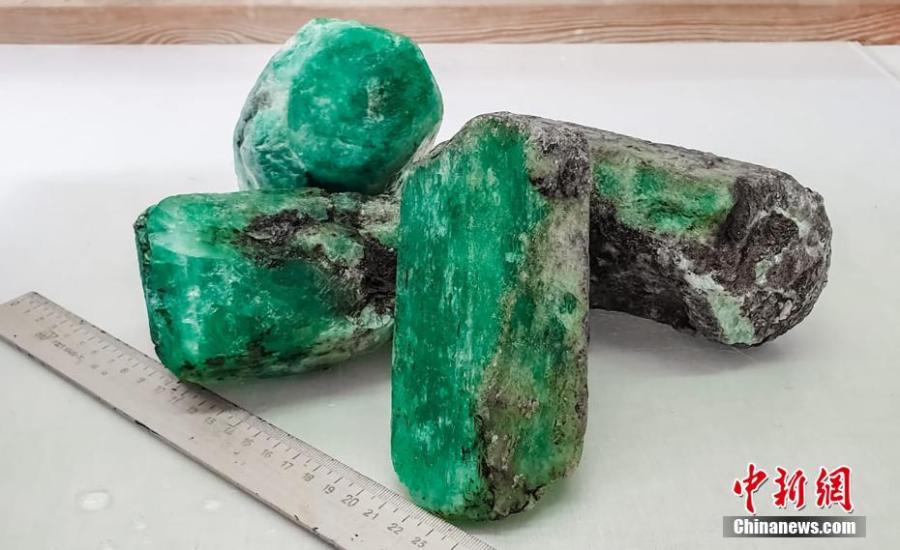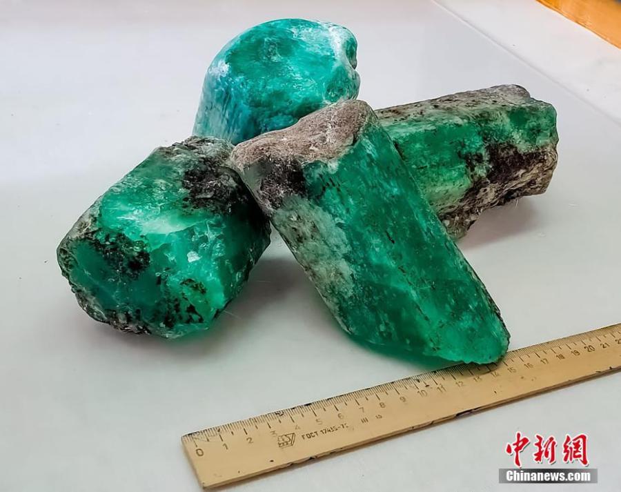 Four emeralds weighing 4.8 kg in total have been found at the Mariinsky emerald mine, part of the Rostec State Corporation, July 7, 2020. The weight of the nuggets ranges from one to one and a half kilograms, and the price - from seven to 11 thousand dollars. The stones are the correct shape, dark green color and good grade. (Photo/Agencies)