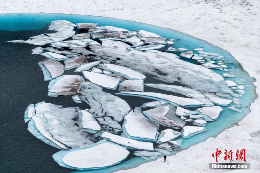 Photo taken on July 7, 2020, shows a view of Lake Sredinnoye in the caldera of Gorely Burnt Volcano. The lake is intermittent and formed from late June to early August with snowmelt water. (Photo/VCG)