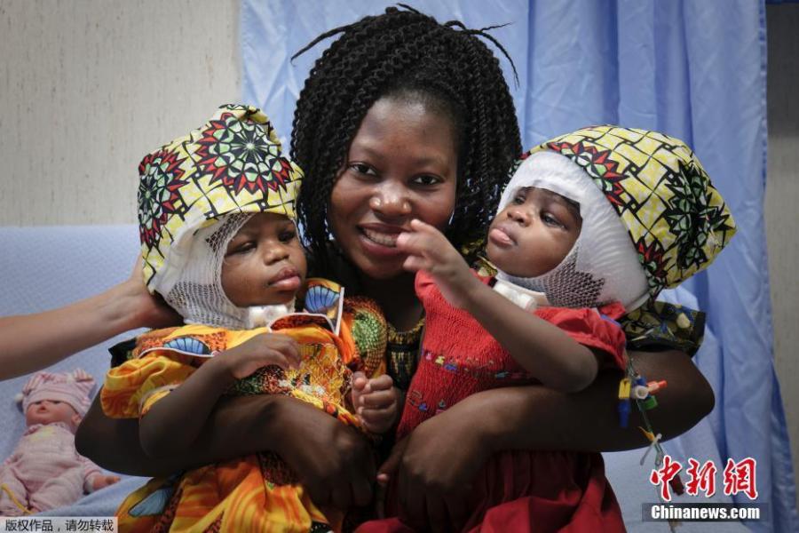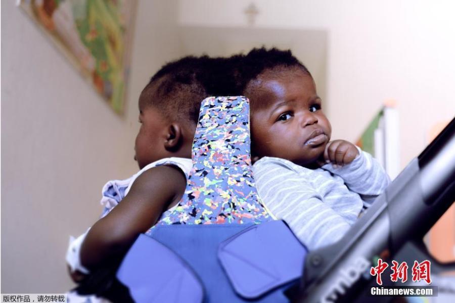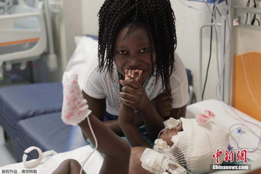 Ermine holds her twins Ervina and Prefina, at the Bambino Gesu Pediatric Hospital, in Rome, June 30, 2020. (Photo/Agencies)