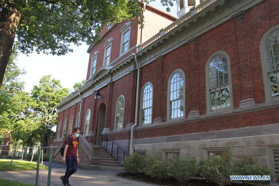 Photo taken on July 14, 2020 shows a view of the campus of Harvard University in Cambridge of Massachusetts, the United States. The U.S. government has rescinded a new rule that could have denied international students their stay in the country if they only attend online courses in the coming fall semester, a federal judge in Boston, Massachusetts said Tuesday. (Photo by Fan Lin/Xinhua)