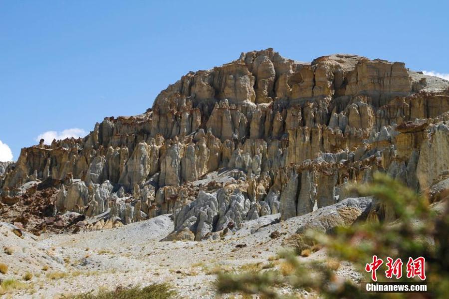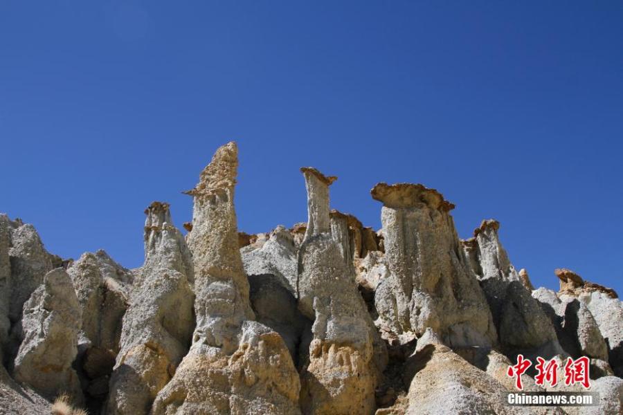 Photo shows the beautiful scenery of the Earth Forest Geoparkin Zanda County, Ali Prefecture, southwest of Tibet Autonomous Region. The Earth Forest Geopark features a stone forest composed of red Ordovician carbonate rocks, as well as karst canyons, caves, lakes, springs and waterfalls. It is the largest and most distinctive clay forest that was formed due to the air-slaking of the tertiary stratum.(Photo/China News Service)