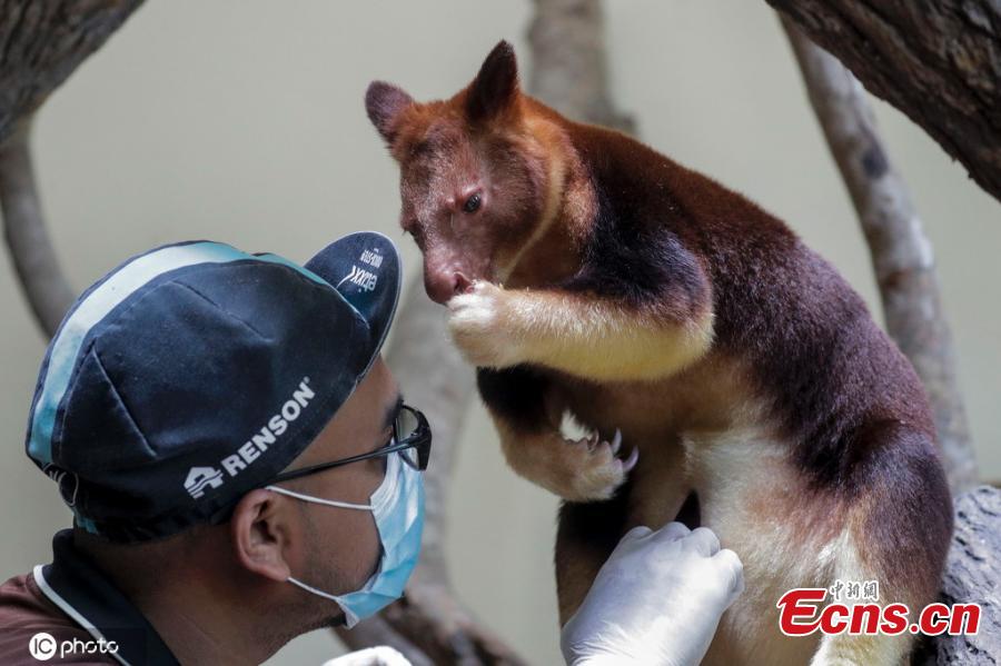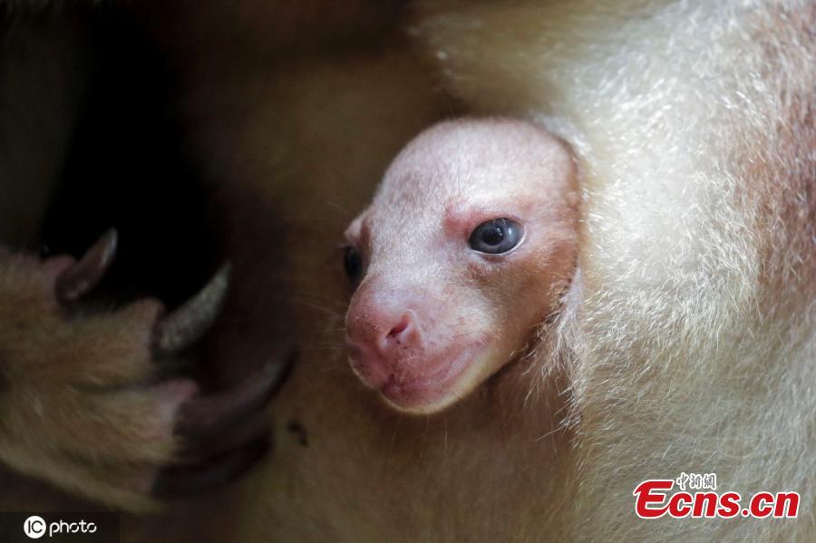 The two Goodfellow’s tree kangaroos at Singapore Zoo are now proud parents of a joey who has just started to pop it’s head out of mum’s pouch to welcome visitors to the zoo! The Goodfellow’s tree kangaroos are among the rarest animals in zoos around the world and the keepers at the Singapore Zoo are proud of to have three of these Goodfellow’s tree kangaroos in their care.(Photo/IC)