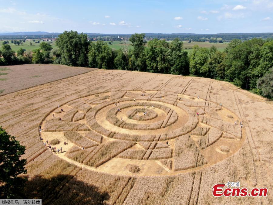 Visitors walk inside a crop circle in a wheat field near Paehl am Ammersee, Germany, July 29, 2020. (Photo/Agencies)