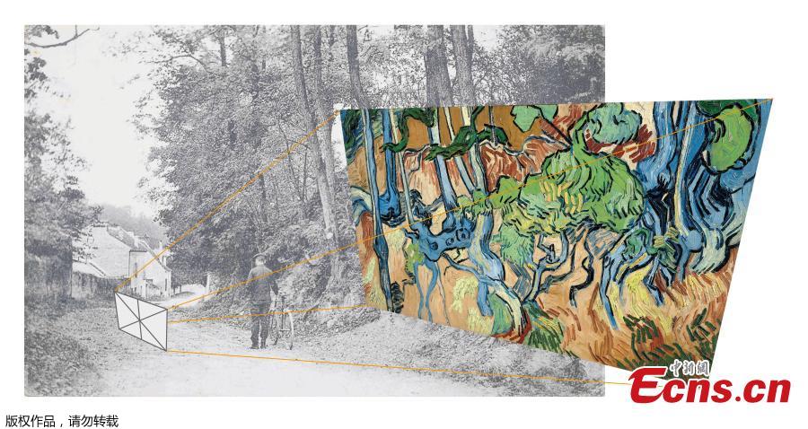 A diagram showing Dutch painter Vincent van Gogh's possible position in relation to the hillside in Auvers-sur-Oise when painting "Tree Roots" (1890) is seen in this handout picture released by the Van Gogh Museum on July 29, 2020. (Photo/Agencies)