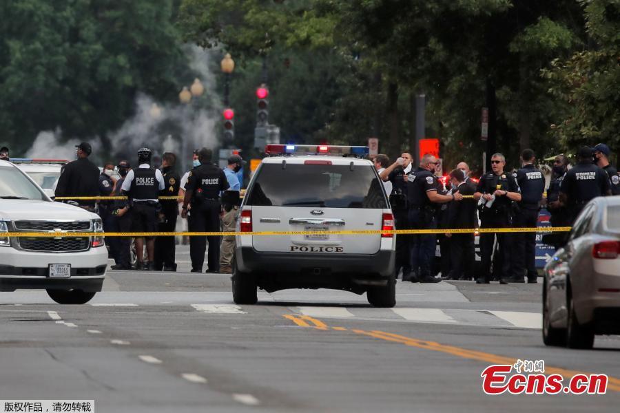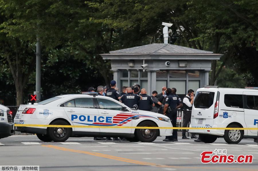 Police officers stand guard after a shooting incident outside of the White House, in Washington, U.S., August 10, 2020.(Photo/Agencies)