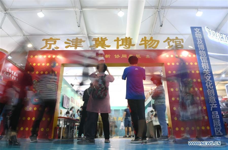 People visit the Beijing-Tianjin-Hebei culture collaborative development exhibition area in Cultural Services Exhibition of the 2020 China International Fair for Trade in Services (CIFTIS) in Beijing, capital of China, Sept. 7, 2020. The CIFTIS runs on Sept. 4-9 in Beijing. (Xinhua/Lu Peng)