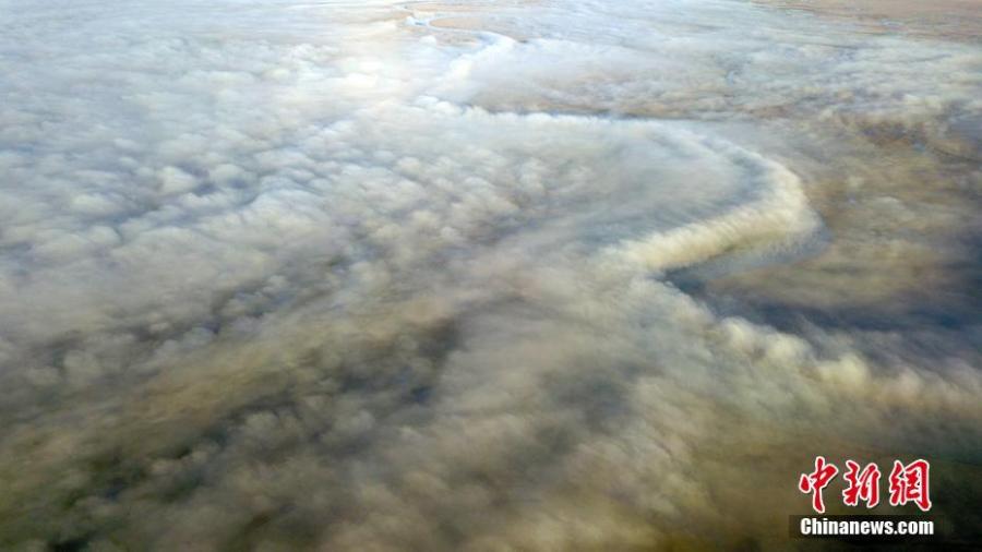 Advection fog scenery is seen over wetlands in Bayingolin Mongol autonomous prefecture in northwest China's Xinjiang Uygur autonomous region on September 14,2020. (Photo: China News Service/Que Hure)