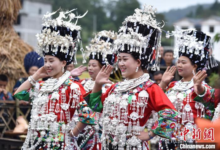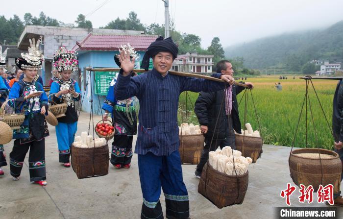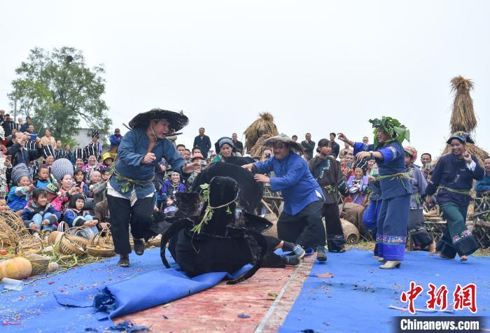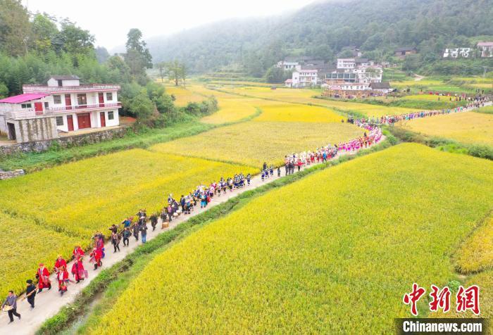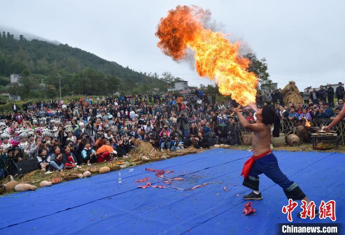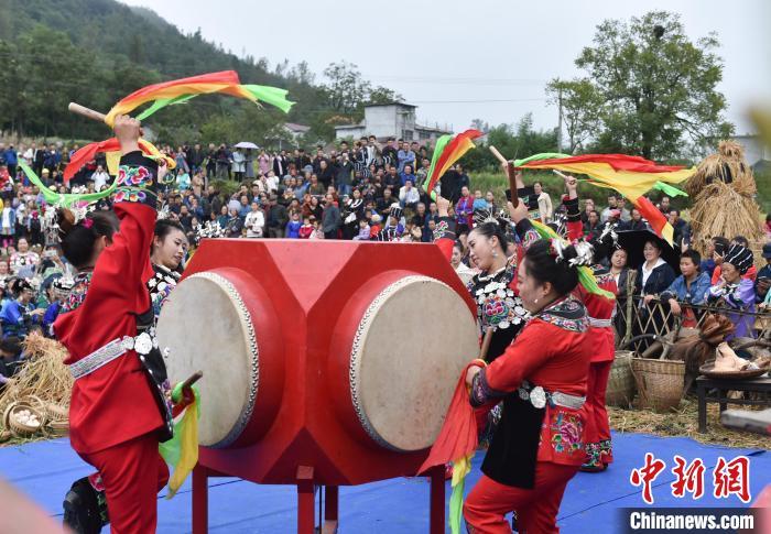 Photo taken on Sept. 20, 2020 shows folk activities are held to celebrate the upcoming Chinese farmers' harvest festival at Panshi Town in Tongren City, southwest China's Guizhou Province. (Photo: China News Service/ Long Yuanbin)