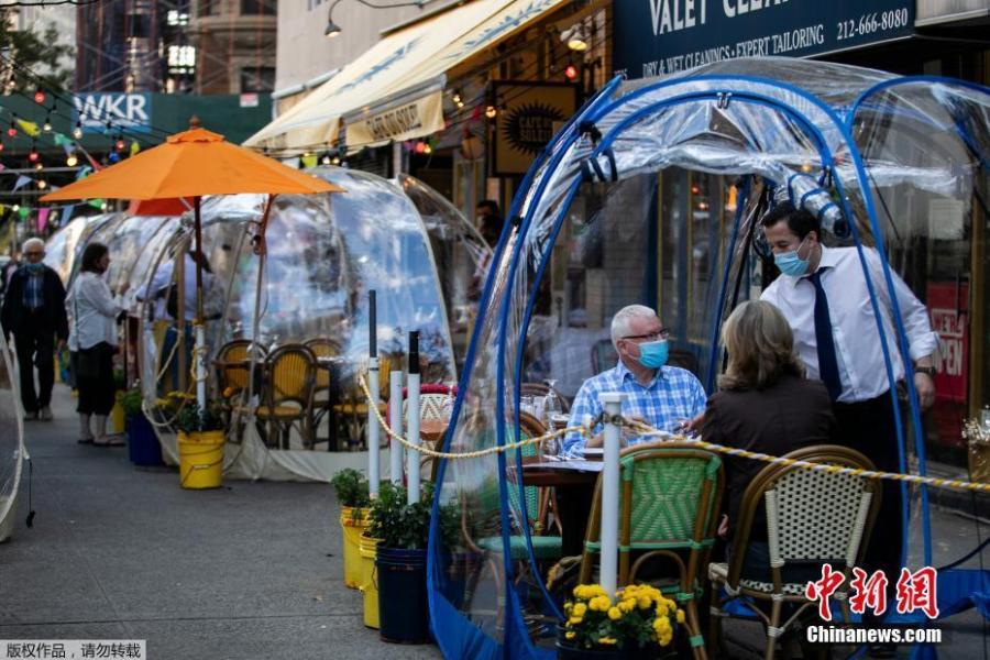 Bubble tents are set up outside Cafe Du Soliel following the outbreak of the coronavirus disease (COVID-19) in the Manhattan borough of New York City, New York, U.S., September 23, 2020. (Photo/Agencies)