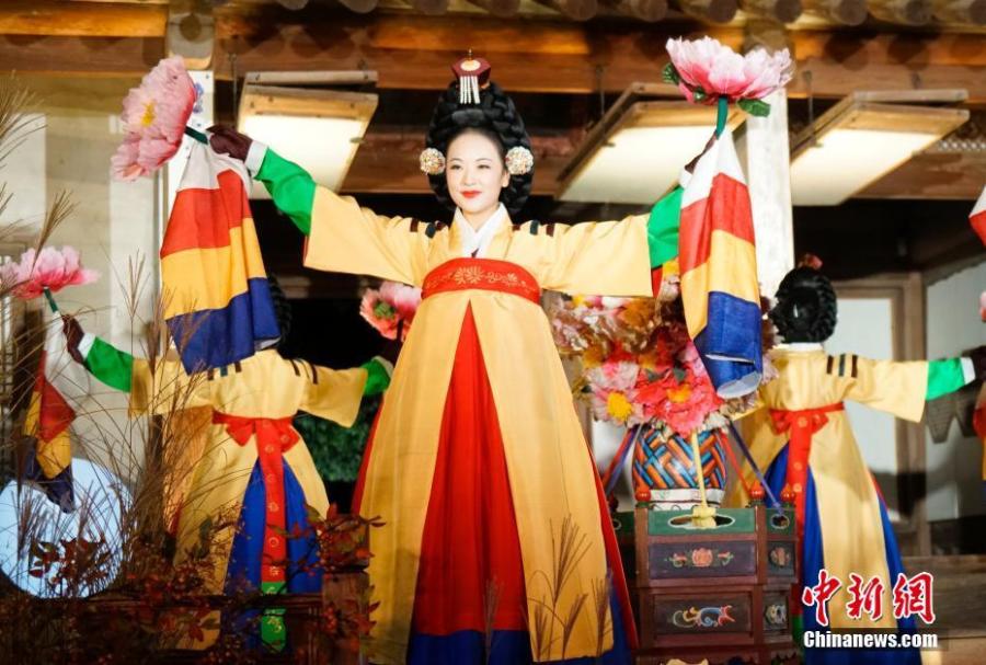 Performers showcase traditional performance at the Changdeokgung Palace during a moonlight tour in Seoul, South Korea, Oct. 29, 2020. Changdeokgung Palace was listed as a UNESCO world heritage site in 1997 and is regarded as a masterpiece of architecture as the buildings are in harmony with the natural settings. (Photo/China News Service)