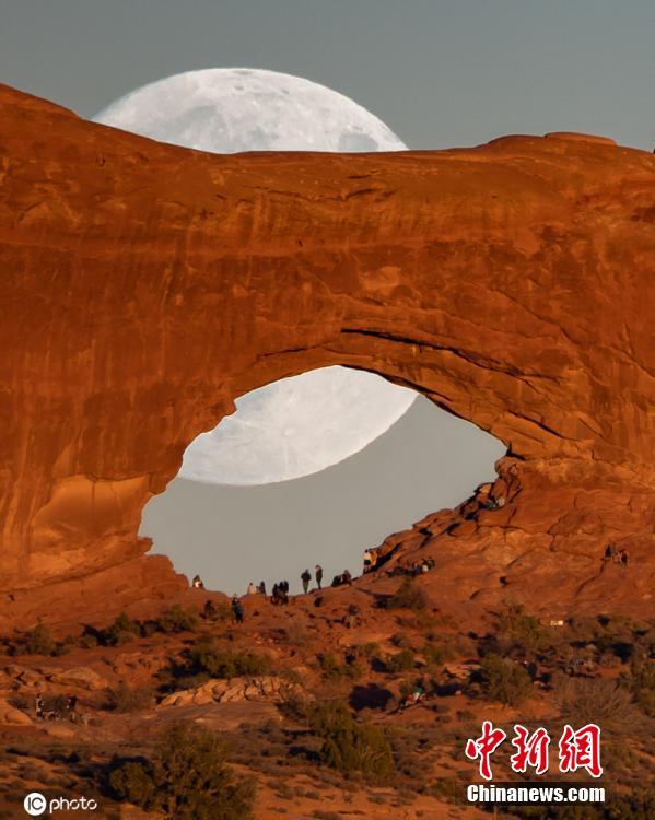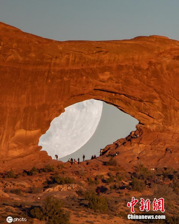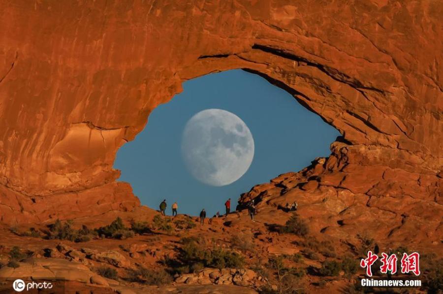 Photographer Zach Cooley captured a stunning image of a full moon passing through a rock arch, making the final picture look like a giant eye. He took the photograph on Oct. 28, 2020 at Arches National Park in Utah after months of planning . (Photo/ICphoto)