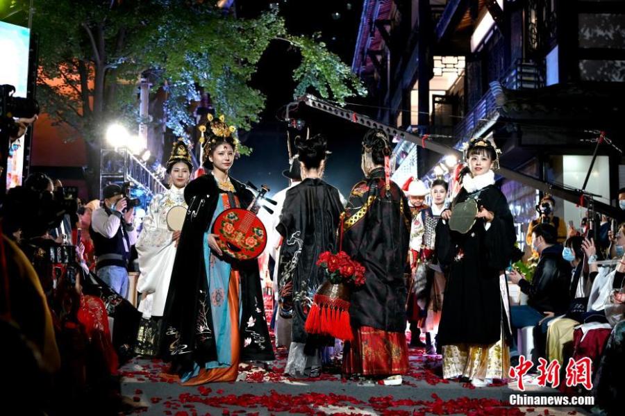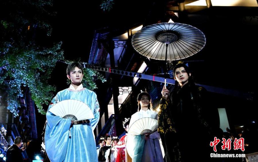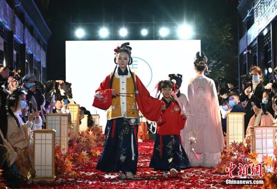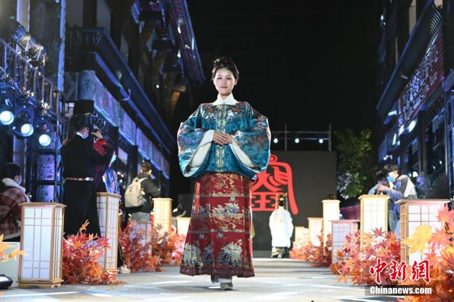 Hanfu lovers dress in hanfu, the traditional clothing of the Han ethnic group at 2020 Hanfu Festival in Chengdu, capital of Southwest China's Sichuan Province, Nov. 22, 2020. (Photo/China News Service)