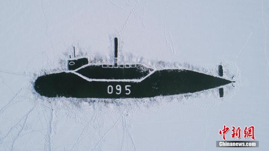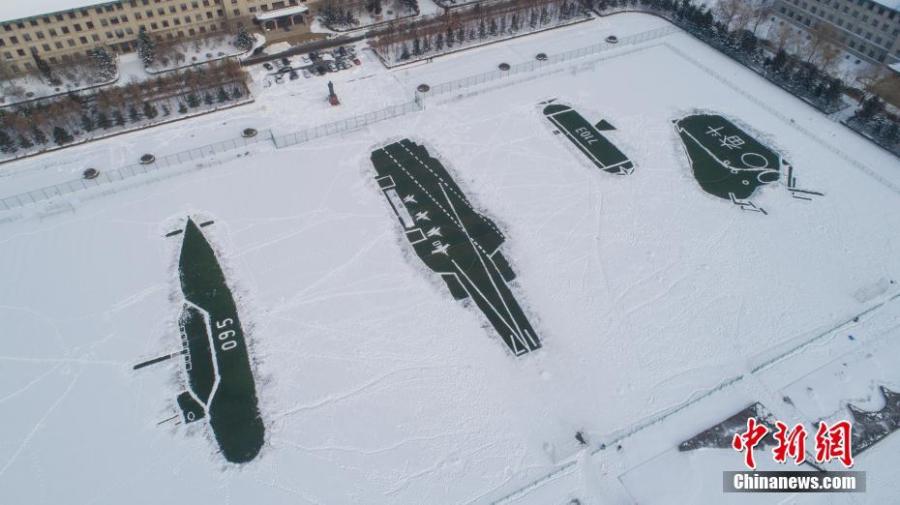 Photo shows a navy fleet in snow created by students and teachers from Harbin Engineering University as heavy snow hit Harbin, capital of northeast China's Heilongjiang Province, Nov. 23, 2020. (Photo/China News Service)
