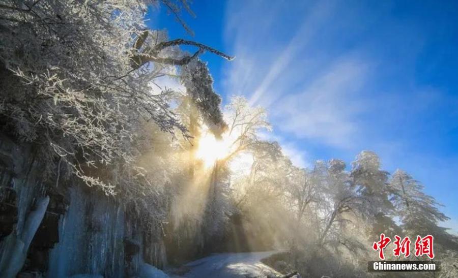 Photo shows trees covered in snow in Ya'an, southwest China's Sichuan Province. Parts of Ya'an witnessed the first snow of this year recently, turning the region into a white fairyland. (Photo/China News Service)