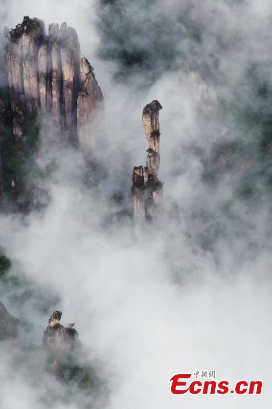 The beautiful Sanqingshan mountain in Shangrao, East China's Jiangxi Province, is enveloped by clouds and mist, Nov. 29, 2020. (Photo: China News Service / Liu Zhankun)