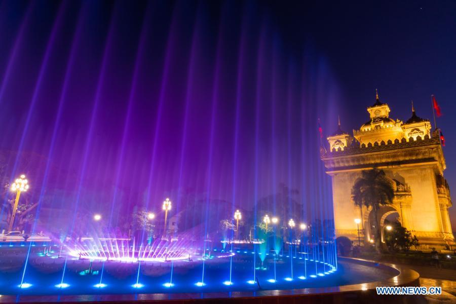 The China-aided lighting system project includes upgrading the fountain, lighting, audio and irrigation system of the park, renovating the lighting system of seven major streets in Vientiane downtown, and building a related control center and video surveillance system.